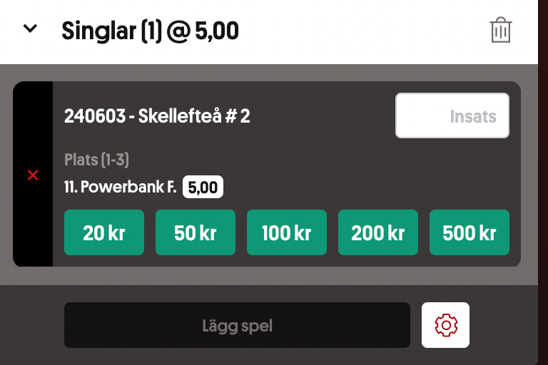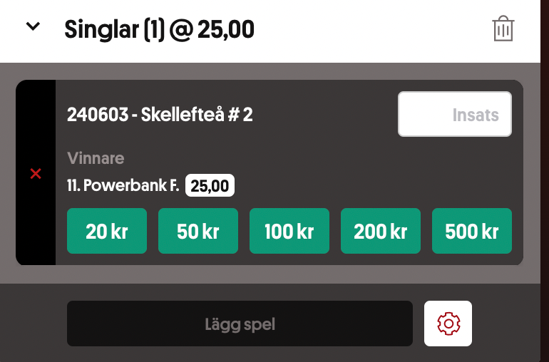 Skellefteå arrangerar måndagens lunchtävlingar och jag har hittat ett fint odds. Tilde Wahlberg selar ut sin 11 Powerbank F i V4-2 som gått bra i stort sett varje start i hennes regi. Nu möter hon lite enklare hästar förutom favoriten. Bör kunna vara tvåa eller trea bakom denne. Testar litet vinnarspel också.
