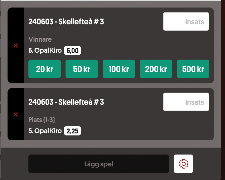Det andra spelet blir kallblodet i V4-3 5 Opal Kiro. Skorna rycks för första gången i lill-comebacken och hästen är snabb ut. Kanske att det saknas lite ork men till dessa odds är jag villig att testa.